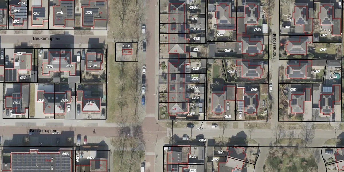 Het perceel waarop Beukemastraat 45 staat heeft een oppervlakte van 152 m². Dit is een middelgroot perceel. De perceeloppervlakte wordt geregistreerd door het Kadaster. Gedetailleerde informatie over de maten van dit perceel kunt u vinden in het rapport Kadastrale kaart met maatvoering van Beukemastraat 45.