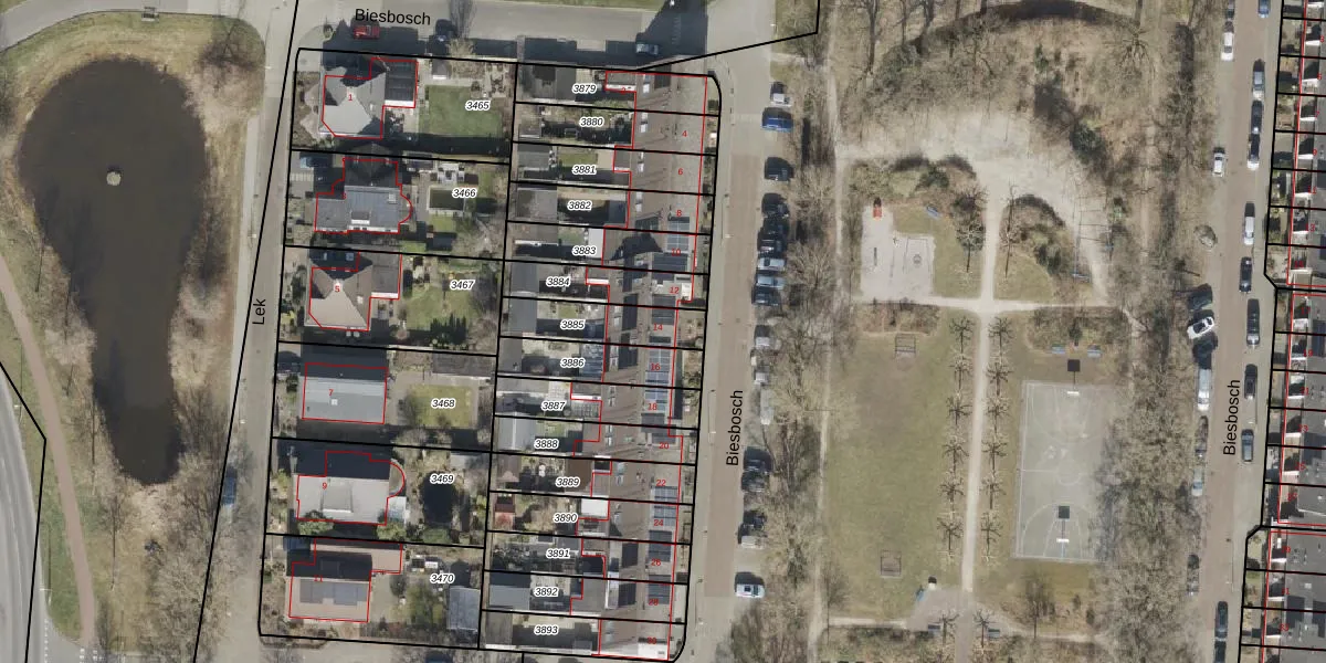 Gebruik de zoekbalk of klik op een perceel voor informatie over de adressen binnen dit perceel.