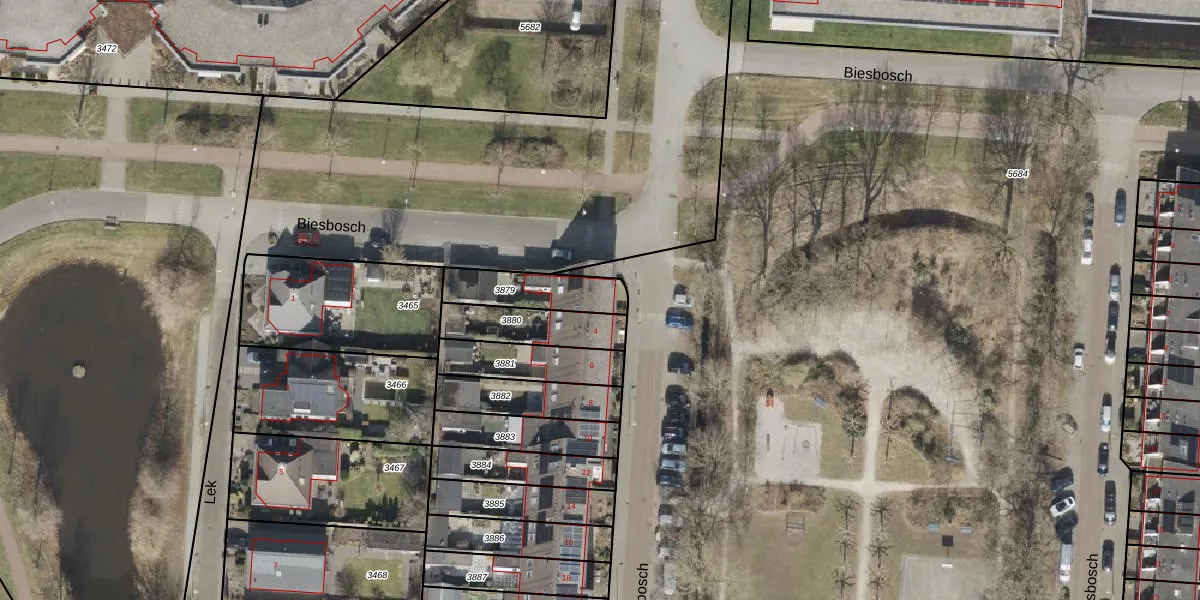 Gebruik de zoekbalk of klik op een perceel voor informatie over de adressen binnen dit perceel.