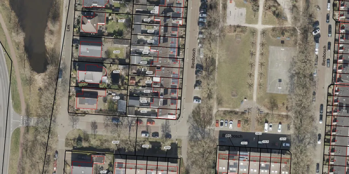 Het perceel waarop Biesbosch 24 staat heeft een oppervlakte van 186 m². Dit is een middelgroot perceel. De perceeloppervlakte wordt geregistreerd door het Kadaster. Gedetailleerde informatie over de maten van dit perceel kunt u vinden in het rapport Kadastrale kaart met maatvoering van Biesbosch 24.