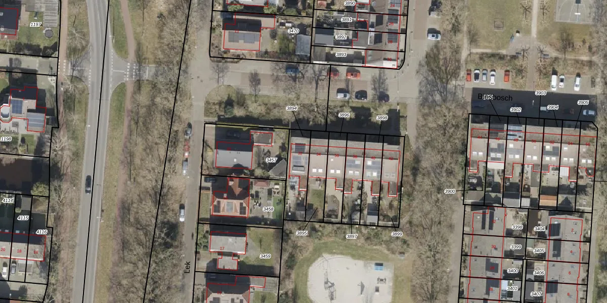 Gebruik de zoekbalk of klik op een perceel voor informatie over de adressen binnen dit perceel.
