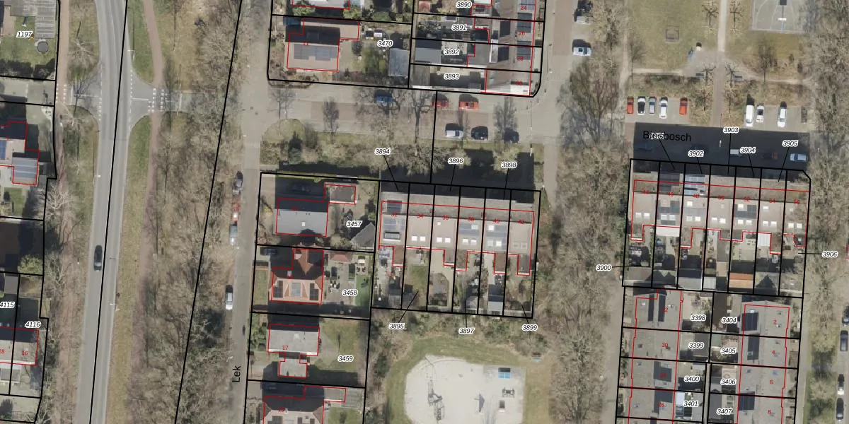 Gebruik de zoekbalk of klik op een perceel voor informatie over de adressen binnen dit perceel.