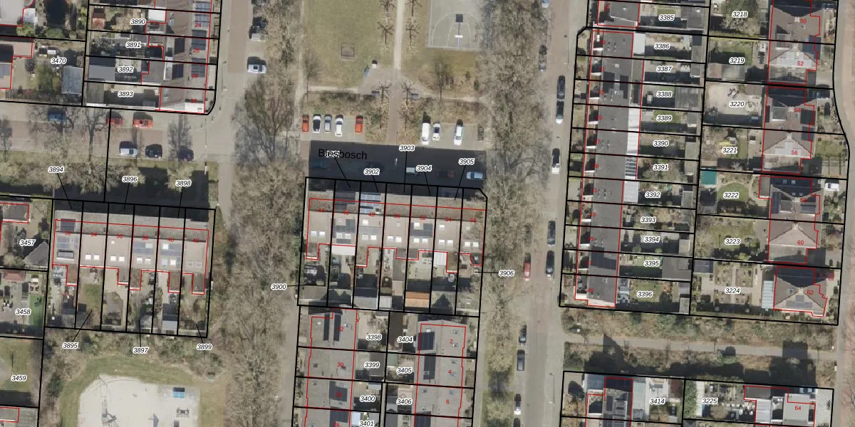 Gebruik de zoekbalk of klik op een perceel voor informatie over de adressen binnen dit perceel.