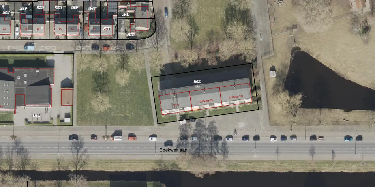 Boekweitlaan 67-G009 is gelegen op kadastraal perceel HGV00I2591. Deze kadastrale aanduiding is uniek en wordt gebruikt door het Kadaster om eigendomsrechten en andere zakelijke rechten vast te leggen. Het perceel maakt onderdeel uit van de kadastrale gemeente Hoogeveen.
