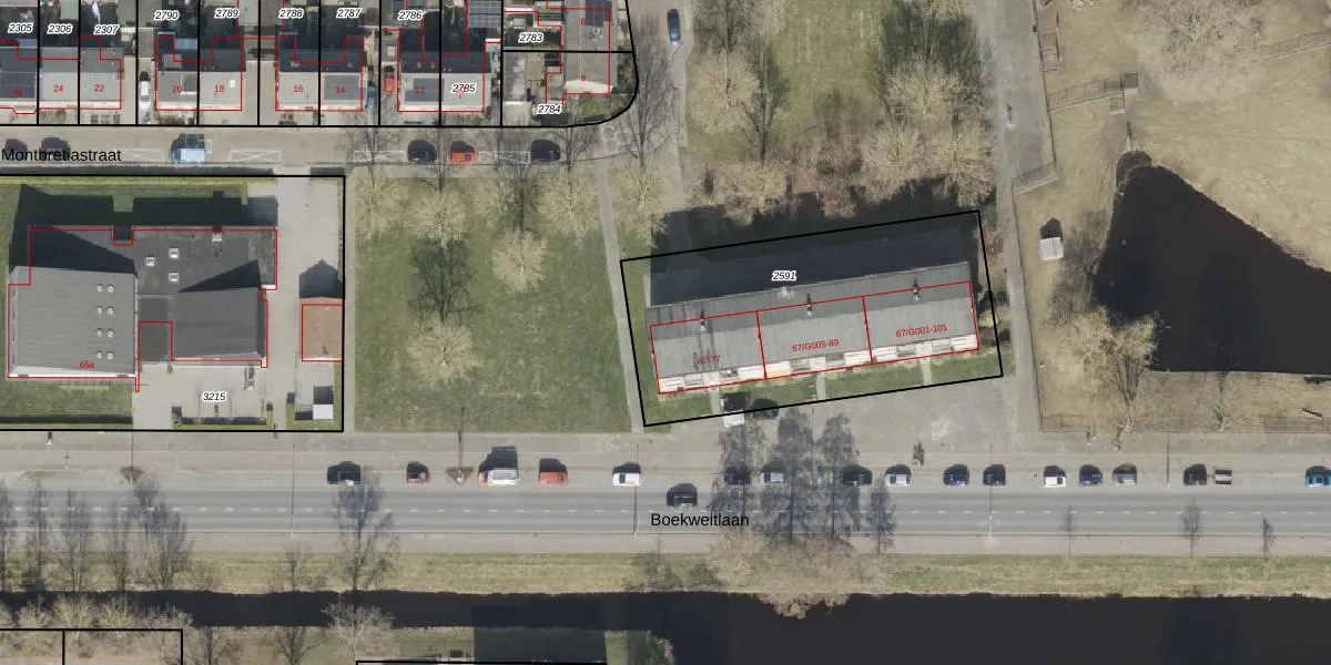 Boekweitlaan 67-G012 is gelegen op kadastraal perceel HGV00I2591. Deze kadastrale aanduiding is uniek en wordt gebruikt door het Kadaster om eigendomsrechten en andere zakelijke rechten vast te leggen. Het perceel maakt onderdeel uit van de kadastrale gemeente Hoogeveen.