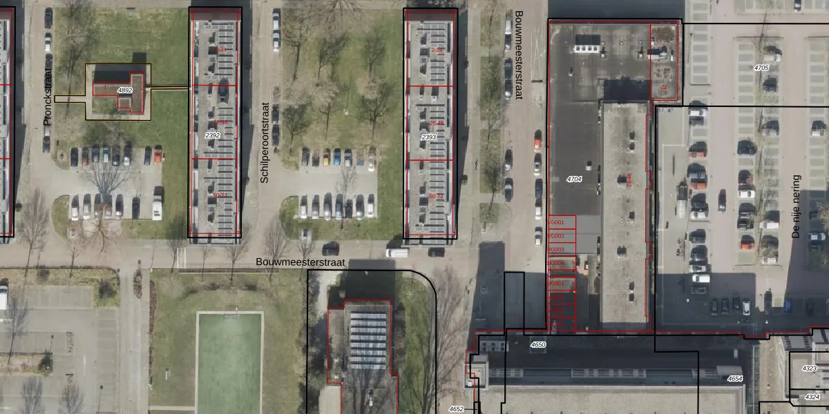 Het perceel waarop Bouwmeesterstraat 66 staat heeft een oppervlakte van 720 m². Dit is een groot perceel. De perceeloppervlakte wordt geregistreerd door het Kadaster. Gedetailleerde informatie over de maten van dit perceel kunt u vinden in het rapport Kadastrale kaart met maatvoering van Bouwmeesterstraat 66.