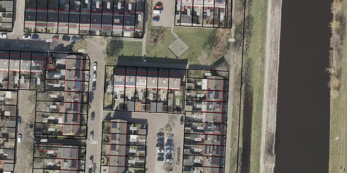 Het perceel waarop Canopus 12 staat heeft een oppervlakte van 245 m². Dit is een middelgroot perceel. De perceeloppervlakte wordt geregistreerd door het Kadaster. Gedetailleerde informatie over de maten van dit perceel kunt u vinden in het rapport Kadastrale kaart met maatvoering van Canopus 12.