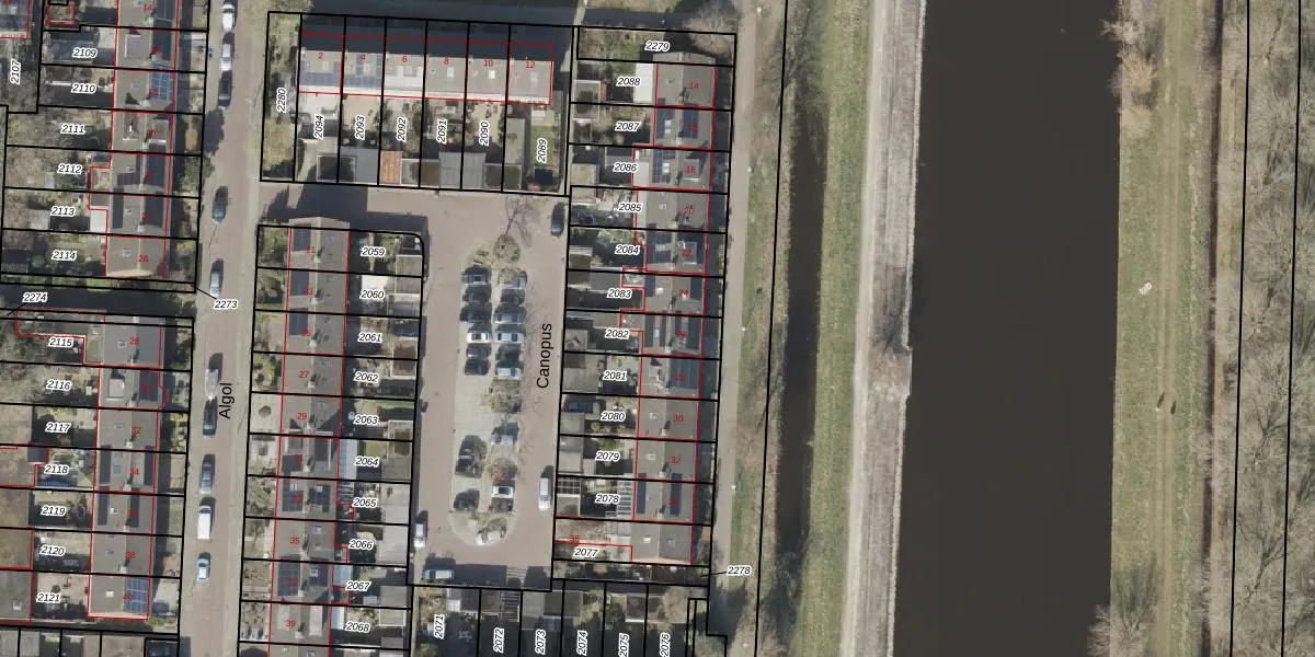 Het perceel waarop Canopus 26 staat heeft een oppervlakte van 151 m². Dit is een middelgroot perceel. De perceeloppervlakte wordt geregistreerd door het Kadaster. Gedetailleerde informatie over de maten van dit perceel kunt u vinden in het rapport Kadastrale kaart met maatvoering van Canopus 26.