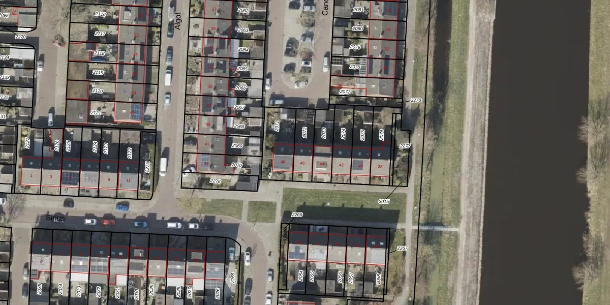 Het perceel waarop Canopus 46 staat heeft een oppervlakte van 150 m². Dit is een middelgroot perceel. De perceeloppervlakte wordt geregistreerd door het Kadaster. Gedetailleerde informatie over de maten van dit perceel kunt u vinden in het rapport Kadastrale kaart met maatvoering van Canopus 46.