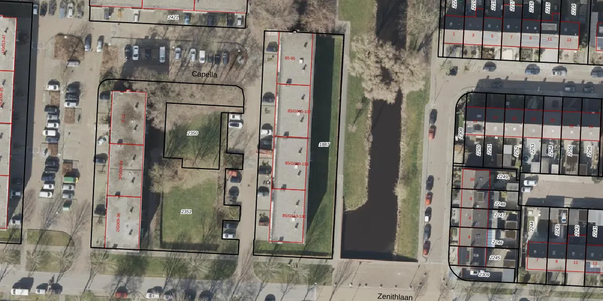 Het perceel waarop Capella 113 staat heeft een oppervlakte van 1956 m². Dit is een zeer groot perceel. De perceeloppervlakte wordt geregistreerd door het Kadaster. Gedetailleerde informatie over de maten van dit perceel kunt u vinden in het rapport Kadastrale kaart met maatvoering van Capella 113.