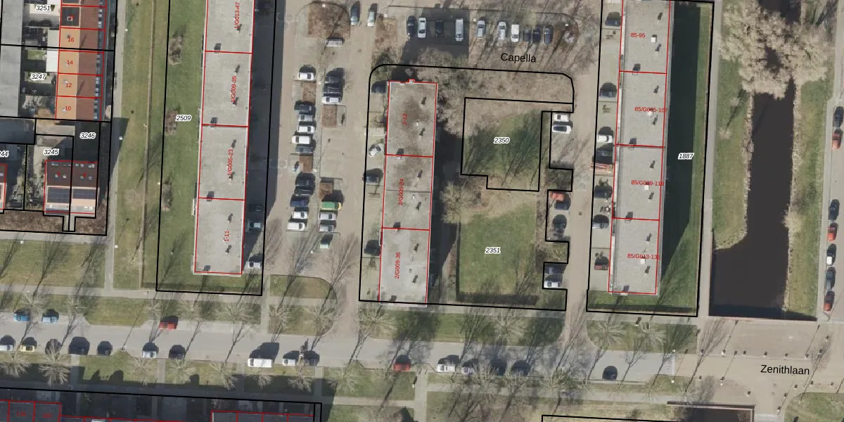Het perceel waarop Capella 20 staat heeft een oppervlakte van 2175 m². Dit is een zeer groot perceel. De perceeloppervlakte wordt geregistreerd door het Kadaster. Gedetailleerde informatie over de maten van dit perceel kunt u vinden in het rapport Kadastrale kaart met maatvoering van Capella 20.