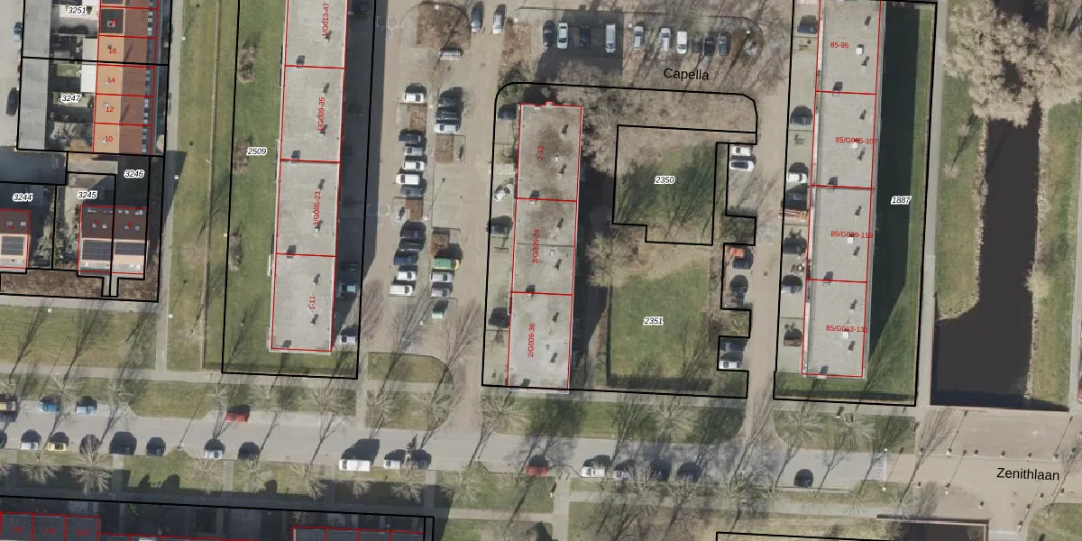 Het perceel waarop Capella 22 staat heeft een oppervlakte van 2175 m². Dit is een zeer groot perceel. De perceeloppervlakte wordt geregistreerd door het Kadaster. Gedetailleerde informatie over de maten van dit perceel kunt u vinden in het rapport Kadastrale kaart met maatvoering van Capella 22.