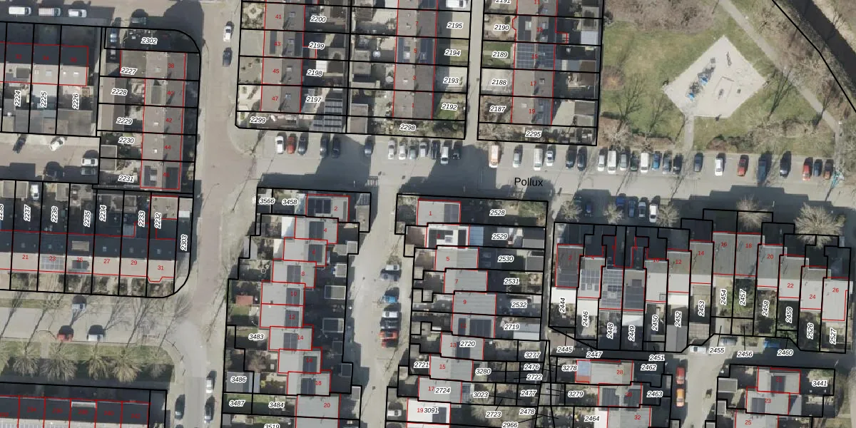 Gebruik de zoekbalk of klik op een perceel voor informatie over de adressen binnen dit perceel.