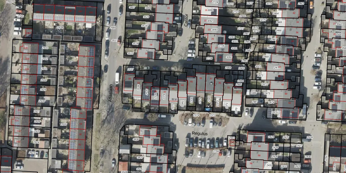 Het perceel waarop Castor 45 staat heeft een oppervlakte van 124 m². Dit is een middelgroot perceel. De perceeloppervlakte wordt geregistreerd door het Kadaster. Gedetailleerde informatie over de maten van dit perceel kunt u vinden in het rapport Kadastrale kaart met maatvoering van Castor 45.