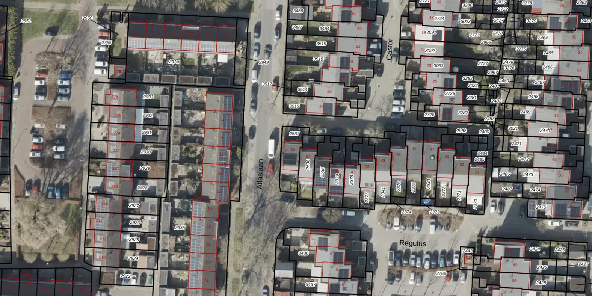 Gebruik de zoekbalk of klik op een perceel voor informatie over de adressen binnen dit perceel.