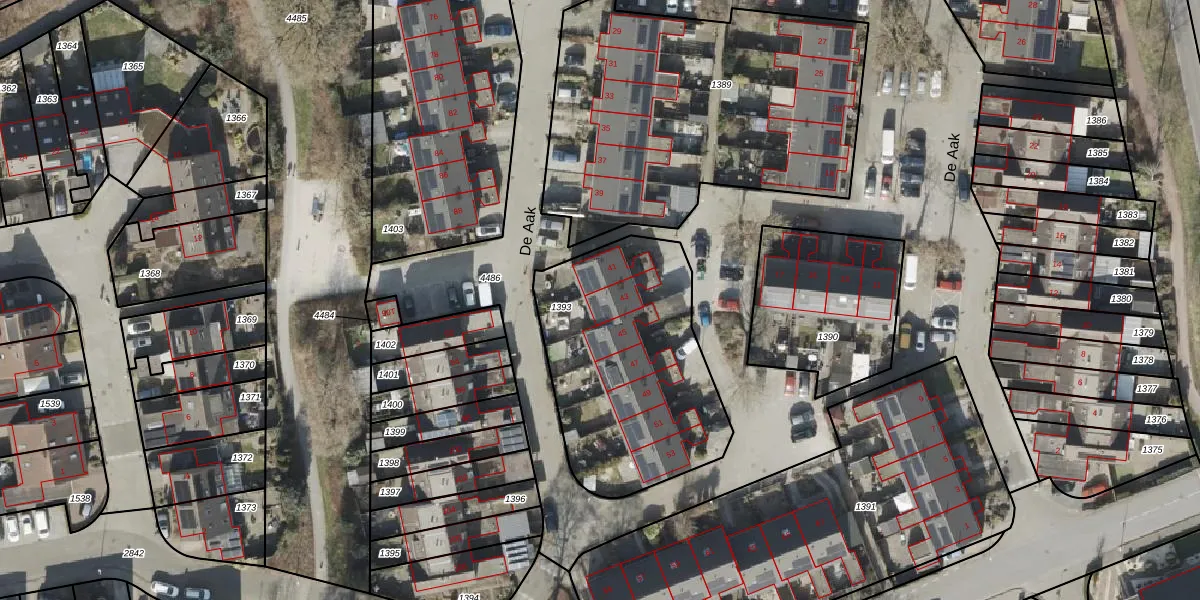 Het perceel waarop De Aak 43 staat heeft een oppervlakte van 1024 m². Dit is een zeer groot perceel. De perceeloppervlakte wordt geregistreerd door het Kadaster. Gedetailleerde informatie over de maten van dit perceel kunt u vinden in het rapport Kadastrale kaart met maatvoering van De Aak 43.