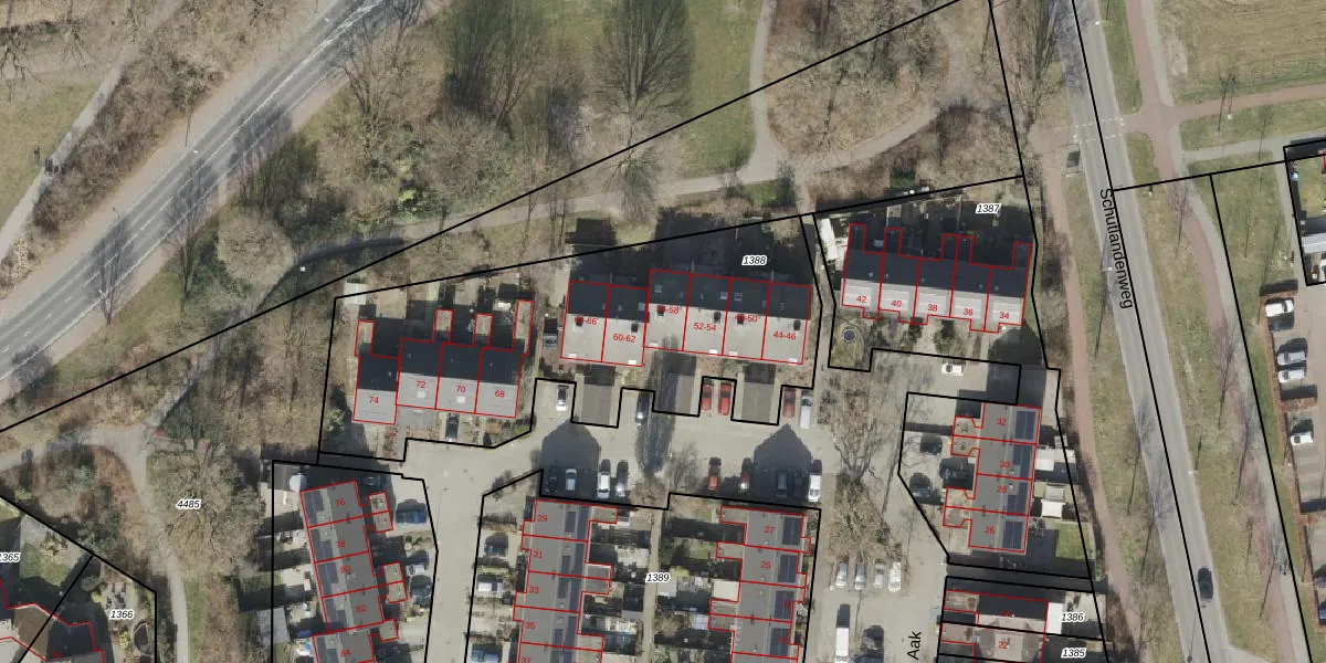 De Aak 56 is gelegen op kadastraal perceel HGV00P1388. Deze kadastrale aanduiding is uniek en wordt gebruikt door het Kadaster om eigendomsrechten en andere zakelijke rechten vast te leggen. Het perceel maakt onderdeel uit van de kadastrale gemeente Hoogeveen.