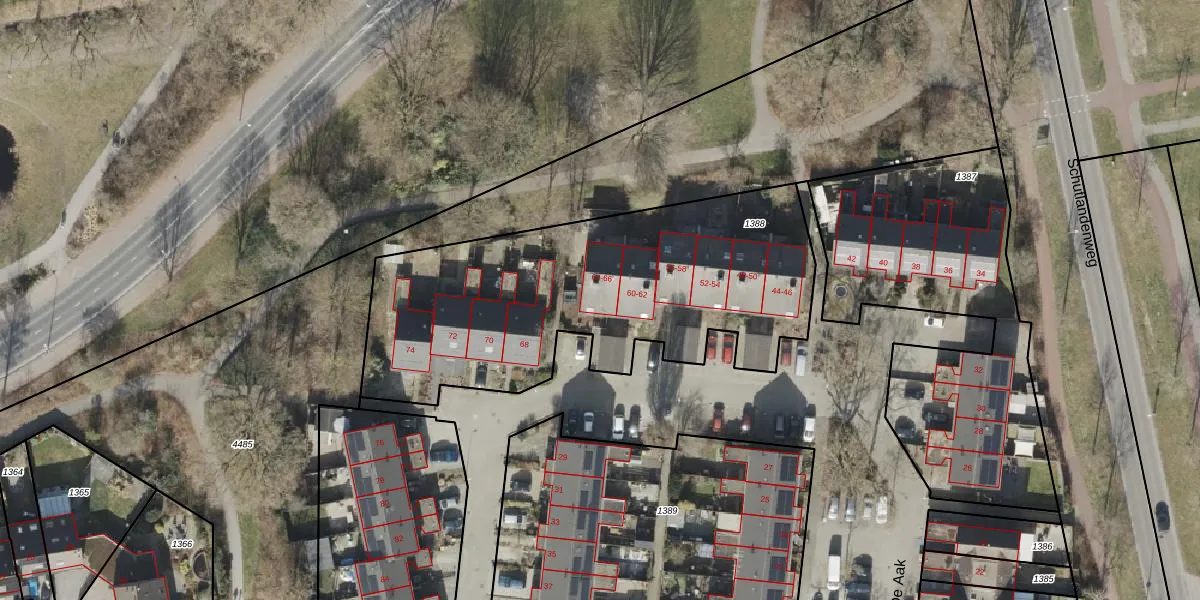 Het perceel waarop De Aak 64 staat heeft een oppervlakte van 1827 m². Dit is een zeer groot perceel. De perceeloppervlakte wordt geregistreerd door het Kadaster. Gedetailleerde informatie over de maten van dit perceel kunt u vinden in het rapport Kadastrale kaart met maatvoering van De Aak 64.