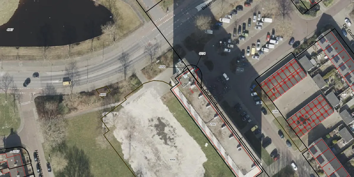Het perceel waarop De Arend 82 staat heeft een oppervlakte van 1003 m². Dit is een zeer groot perceel. De perceeloppervlakte wordt geregistreerd door het Kadaster. Gedetailleerde informatie over de maten van dit perceel kunt u vinden in het rapport Kadastrale kaart met maatvoering van De Arend 82.
