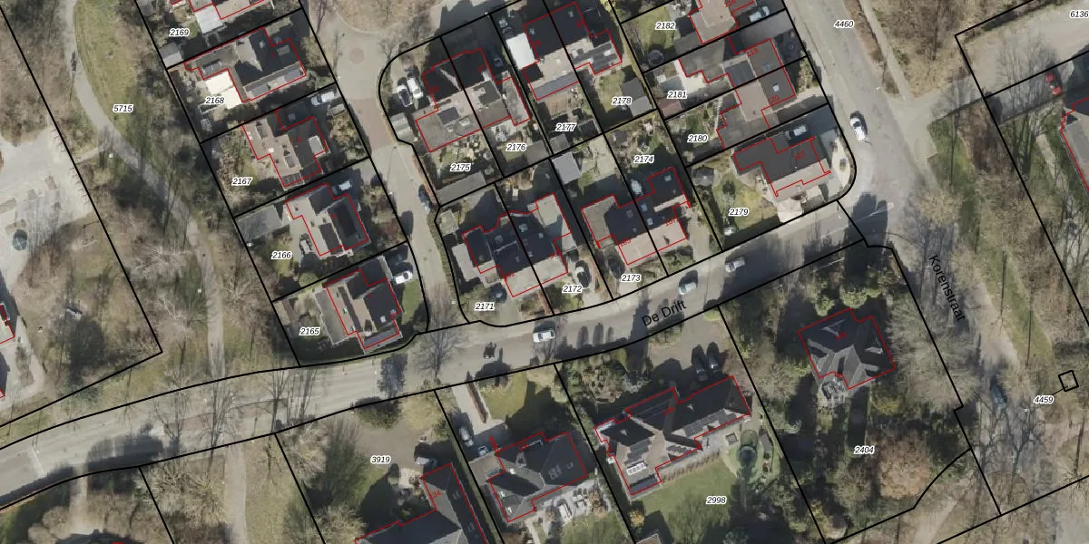 Gebruik de zoekbalk of klik op een perceel voor informatie over de adressen binnen dit perceel.