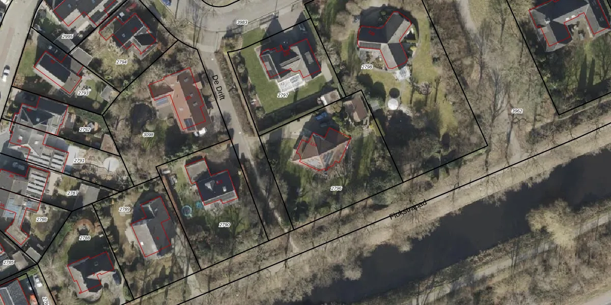 Het perceel waarop De Drift 124 staat heeft een oppervlakte van 1251 m². Dit is een zeer groot perceel. De perceeloppervlakte wordt geregistreerd door het Kadaster. Gedetailleerde informatie over de maten van dit perceel kunt u vinden in het rapport Kadastrale kaart met maatvoering van De Drift 124.