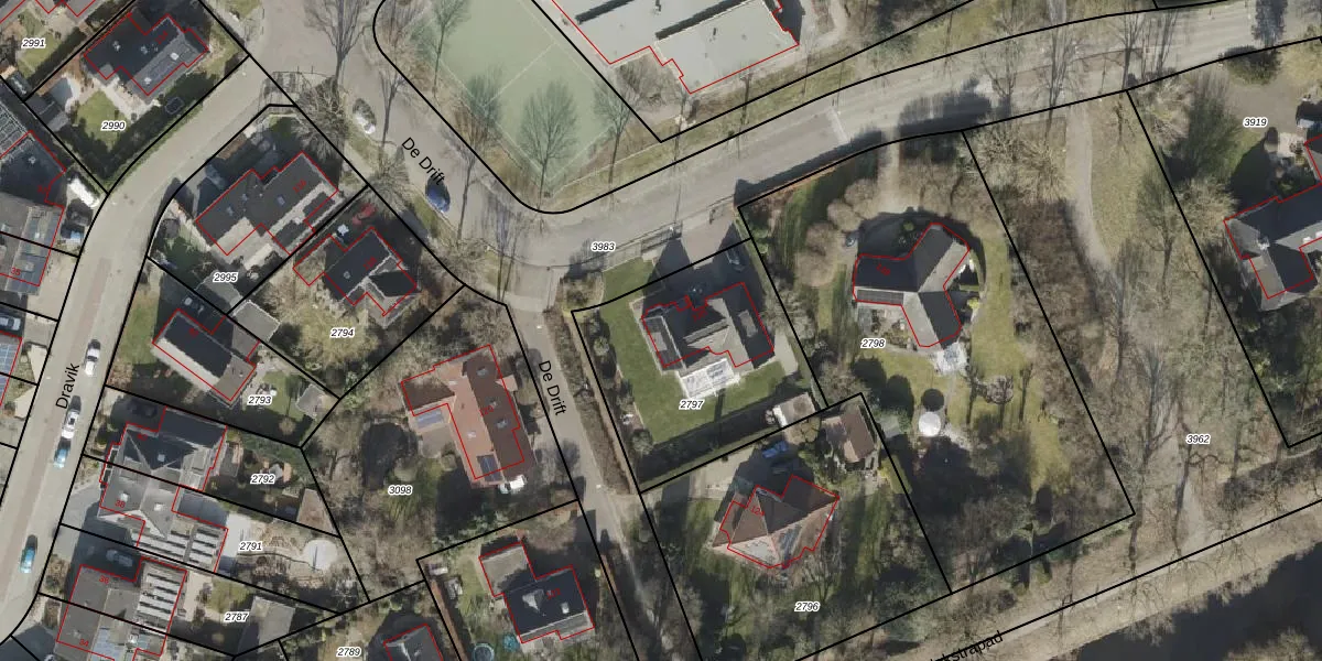 Het perceel waarop De Drift 126 staat heeft een oppervlakte van 863 m². Dit is een groot perceel. De perceeloppervlakte wordt geregistreerd door het Kadaster. Gedetailleerde informatie over de maten van dit perceel kunt u vinden in het rapport Kadastrale kaart met maatvoering van De Drift 126.