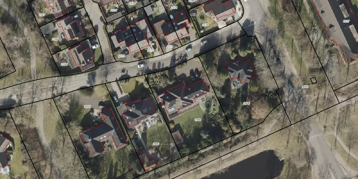 Het perceel waarop De Drift 138 staat heeft een oppervlakte van 1555 m². Dit is een zeer groot perceel. De perceeloppervlakte wordt geregistreerd door het Kadaster. Gedetailleerde informatie over de maten van dit perceel kunt u vinden in het rapport Kadastrale kaart met maatvoering van De Drift 138.