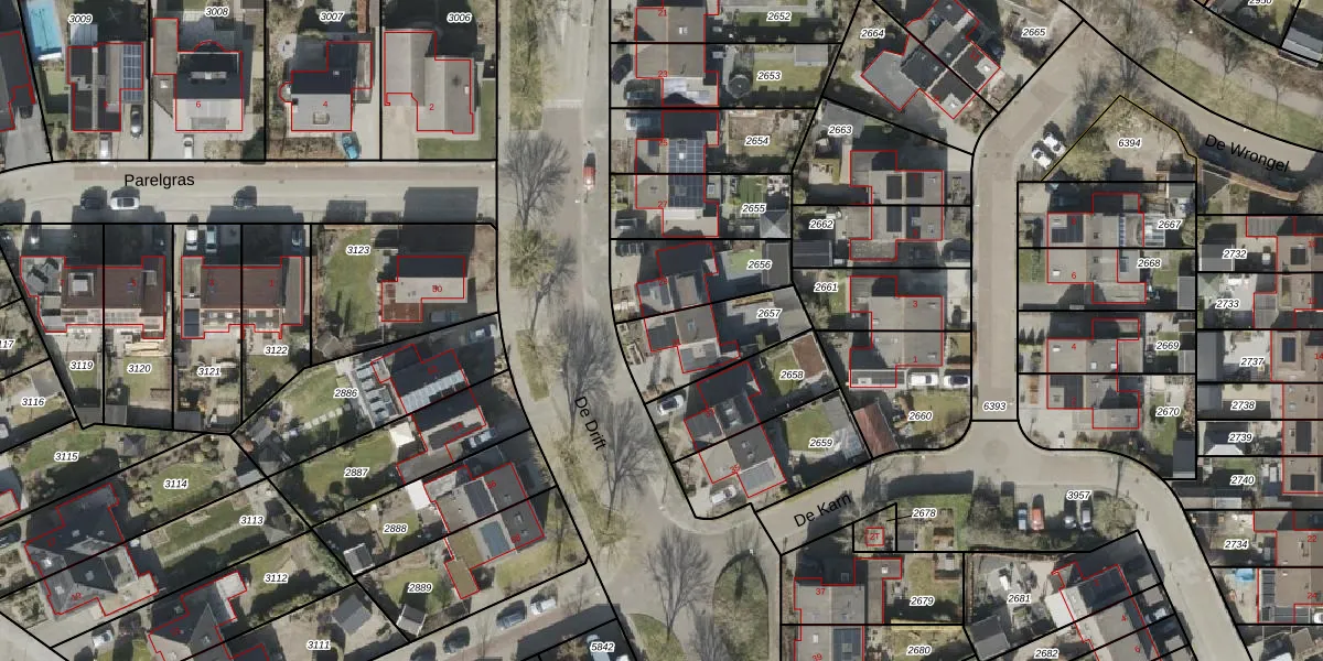 Het perceel waarop De Drift 31 staat heeft een oppervlakte van 281 m². Dit is een middelgroot perceel. De perceeloppervlakte wordt geregistreerd door het Kadaster. Gedetailleerde informatie over de maten van dit perceel kunt u vinden in het rapport Kadastrale kaart met maatvoering van De Drift 31.