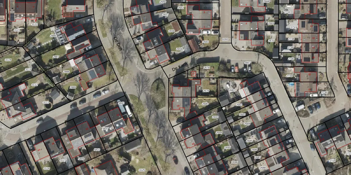 Het perceel waarop De Drift 37 staat heeft een oppervlakte van 326 m². Dit is een groot perceel. De perceeloppervlakte wordt geregistreerd door het Kadaster. Gedetailleerde informatie over de maten van dit perceel kunt u vinden in het rapport Kadastrale kaart met maatvoering van De Drift 37.