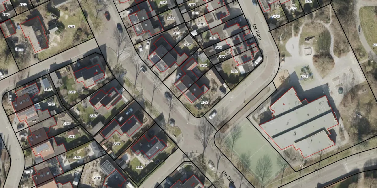 Het perceel waarop De Drift 55 staat heeft een oppervlakte van 394 m². Dit is een groot perceel. De perceeloppervlakte wordt geregistreerd door het Kadaster. Gedetailleerde informatie over de maten van dit perceel kunt u vinden in het rapport Kadastrale kaart met maatvoering van De Drift 55.