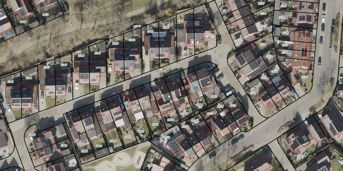 Het perceel waarop De Garve 5 staat heeft een oppervlakte van 251 m². Dit is een middelgroot perceel. De perceeloppervlakte wordt geregistreerd door het Kadaster. Gedetailleerde informatie over de maten van dit perceel kunt u vinden in het rapport Kadastrale kaart met maatvoering van De Garve 5.