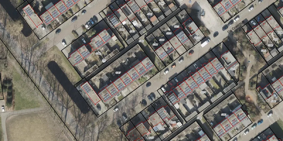 Het perceel waarop De Grasmus 13 staat heeft een oppervlakte van 1404 m². Dit is een zeer groot perceel. De perceeloppervlakte wordt geregistreerd door het Kadaster. Gedetailleerde informatie over de maten van dit perceel kunt u vinden in het rapport Kadastrale kaart met maatvoering van De Grasmus 13.