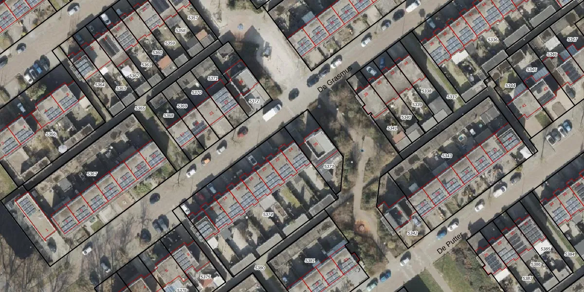 Het perceel waarop De Grasmus 24 staat heeft een oppervlakte van 1377 m². Dit is een zeer groot perceel. De perceeloppervlakte wordt geregistreerd door het Kadaster. Gedetailleerde informatie over de maten van dit perceel kunt u vinden in het rapport Kadastrale kaart met maatvoering van De Grasmus 24.