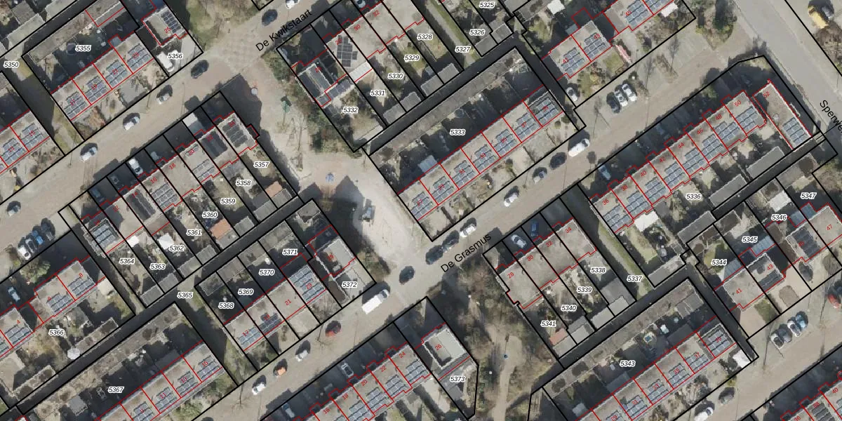 Het perceel waarop De Grasmus 27 staat heeft een oppervlakte van 1104 m². Dit is een zeer groot perceel. De perceeloppervlakte wordt geregistreerd door het Kadaster. Gedetailleerde informatie over de maten van dit perceel kunt u vinden in het rapport Kadastrale kaart met maatvoering van De Grasmus 27.