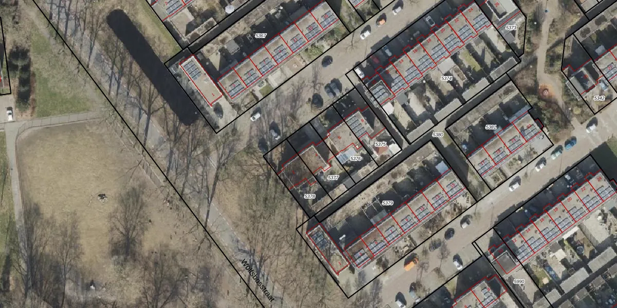Gebruik de zoekbalk of klik op een perceel voor informatie over de adressen binnen dit perceel.
