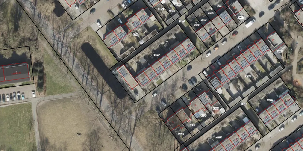 De Grasmus 5 is gelegen op kadastraal perceel HGV00D5367. Deze kadastrale aanduiding is uniek en wordt gebruikt door het Kadaster om eigendomsrechten en andere zakelijke rechten vast te leggen. Het perceel maakt onderdeel uit van de kadastrale gemeente Hoogeveen.