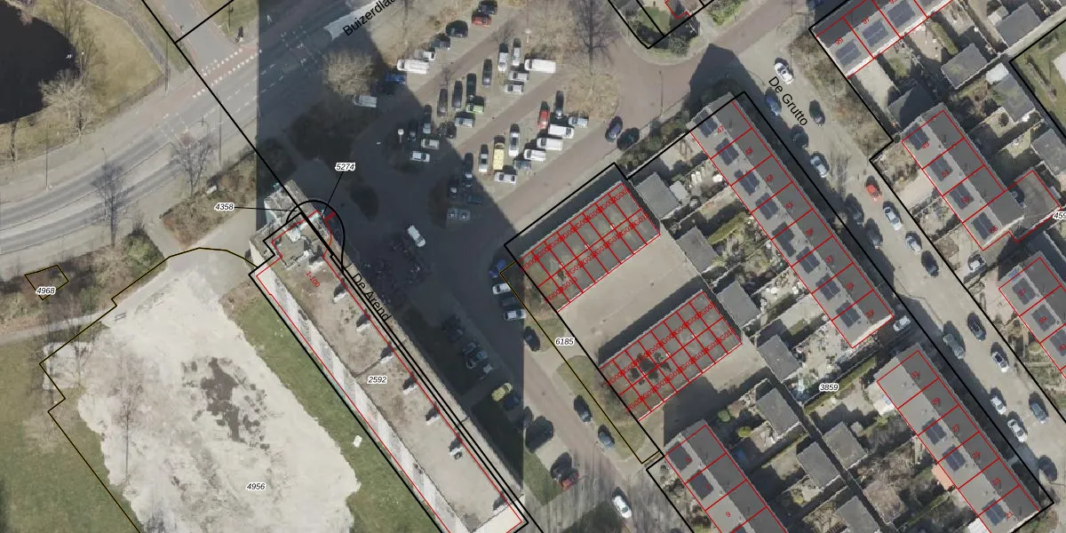 Het perceel waarop De Grutto 1-G008 staat heeft een oppervlakte van 5451 m². Dit is een zeer groot perceel. De perceeloppervlakte wordt geregistreerd door het Kadaster. Gedetailleerde informatie over de maten van dit perceel kunt u vinden in het rapport Kadastrale kaart met maatvoering van De Grutto 1-G008.