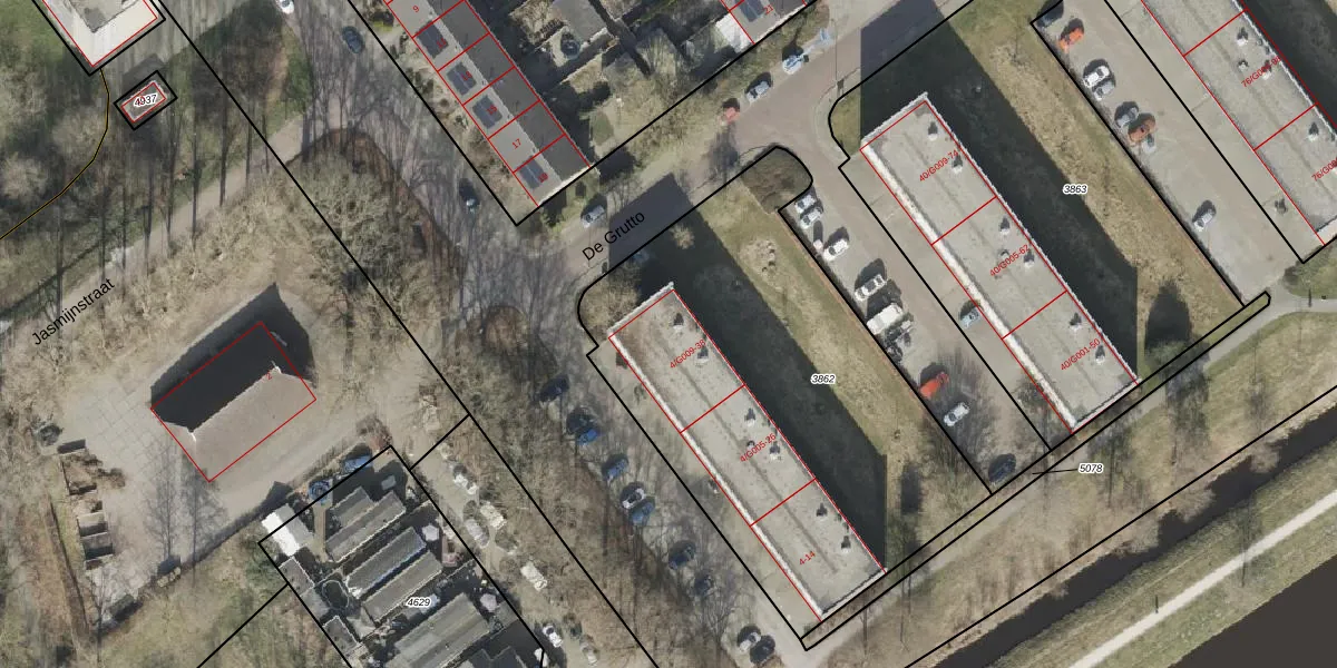 De Grutto 36 is gelegen op kadastraal perceel HGV00D3862. Deze kadastrale aanduiding is uniek en wordt gebruikt door het Kadaster om eigendomsrechten en andere zakelijke rechten vast te leggen. Het perceel maakt onderdeel uit van de kadastrale gemeente Hoogeveen.