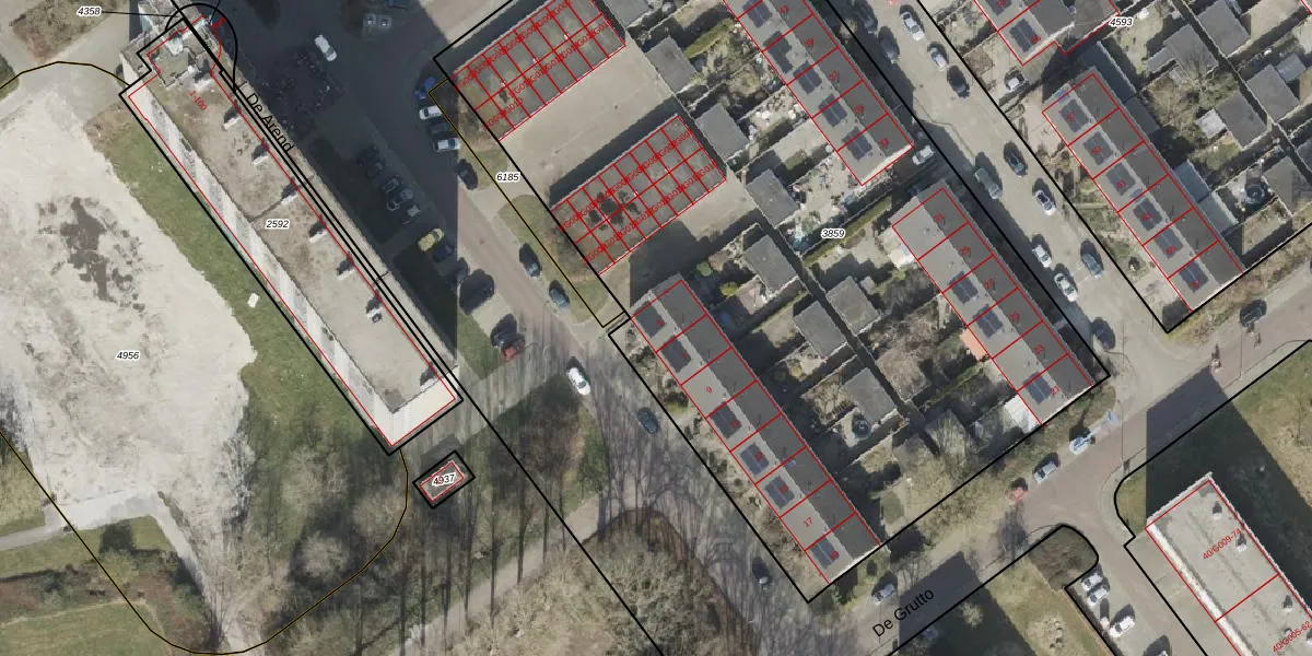 De Grutto 5 is gelegen op kadastraal perceel HGV00D3859. Deze kadastrale aanduiding is uniek en wordt gebruikt door het Kadaster om eigendomsrechten en andere zakelijke rechten vast te leggen. Het perceel maakt onderdeel uit van de kadastrale gemeente Hoogeveen.