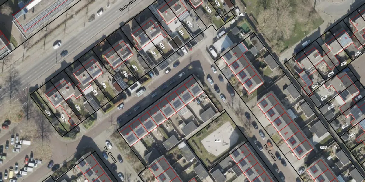 De Grutto 87 is gelegen op kadastraal perceel HGV00D4593. Deze kadastrale aanduiding is uniek en wordt gebruikt door het Kadaster om eigendomsrechten en andere zakelijke rechten vast te leggen. Het perceel maakt onderdeel uit van de kadastrale gemeente Hoogeveen.