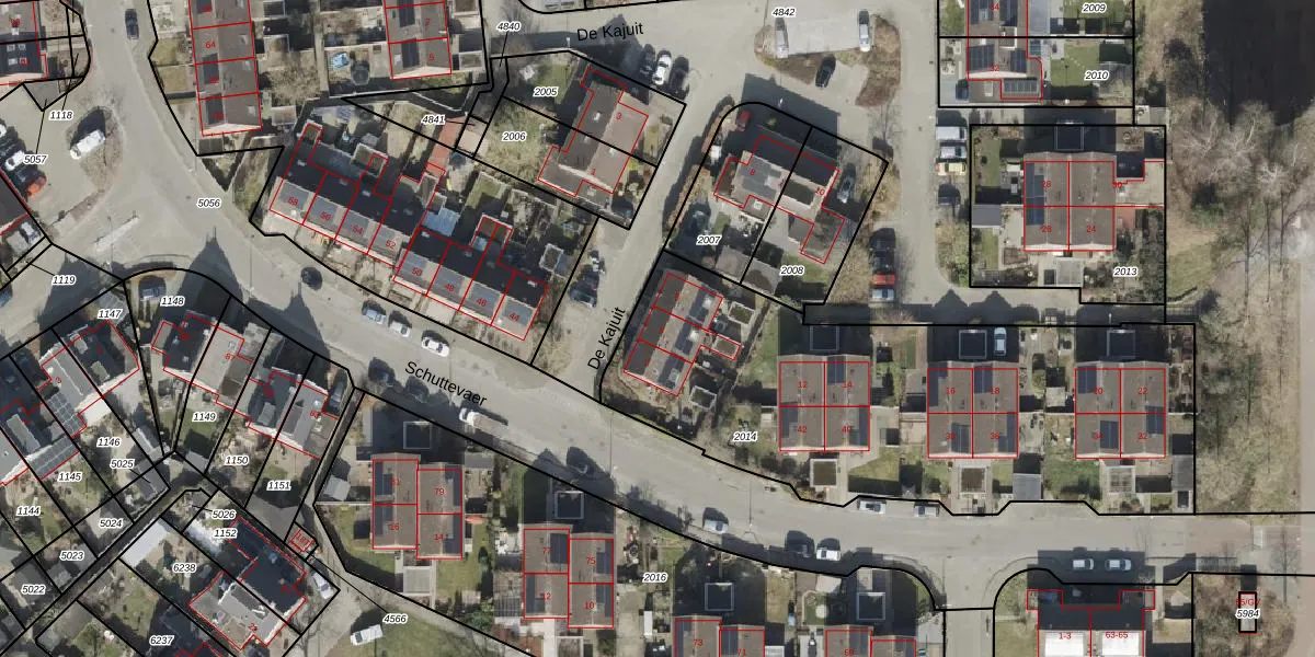 Het perceel waarop De Kajuit 4 staat heeft een oppervlakte van 2385 m². Dit is een zeer groot perceel. De perceeloppervlakte wordt geregistreerd door het Kadaster. Gedetailleerde informatie over de maten van dit perceel kunt u vinden in het rapport Kadastrale kaart met maatvoering van De Kajuit 4.