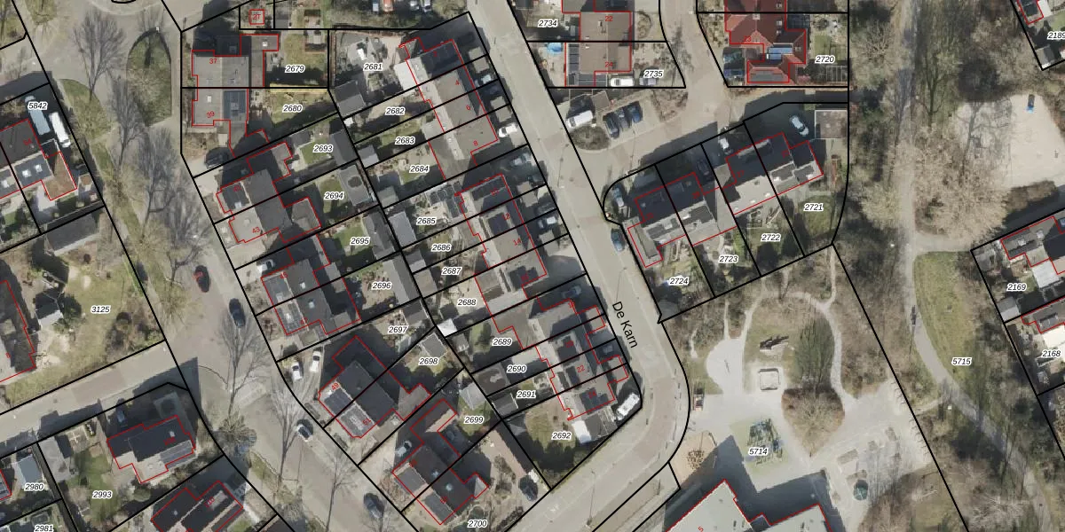 De Karn 16 is gelegen op kadastraal perceel HGV00P2688. Deze kadastrale aanduiding is uniek en wordt gebruikt door het Kadaster om eigendomsrechten en andere zakelijke rechten vast te leggen. Het perceel maakt onderdeel uit van de kadastrale gemeente Hoogeveen.
