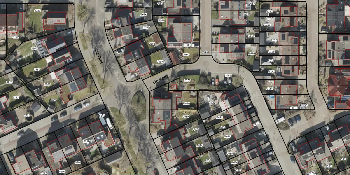 Het perceel waarop De Karn 2-T staat heeft een oppervlakte van 38 m². Dit is een klein perceel. De perceeloppervlakte wordt geregistreerd door het Kadaster. Gedetailleerde informatie over de maten van dit perceel kunt u vinden in het rapport Kadastrale kaart met maatvoering van De Karn 2-T.