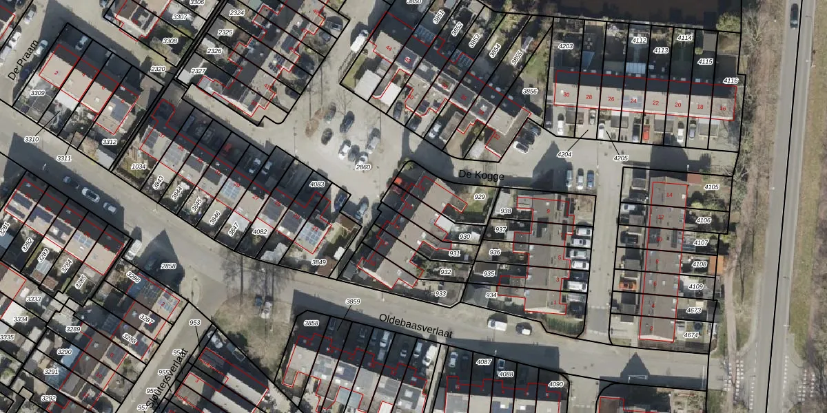 Gebruik de zoekbalk of klik op een perceel voor informatie over de adressen binnen dit perceel.