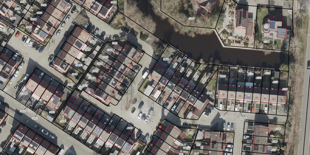 Het perceel waarop De Kogge 44 staat heeft een oppervlakte van 282 m². Dit is een middelgroot perceel. De perceeloppervlakte wordt geregistreerd door het Kadaster. Gedetailleerde informatie over de maten van dit perceel kunt u vinden in het rapport Kadastrale kaart met maatvoering van De Kogge 44.