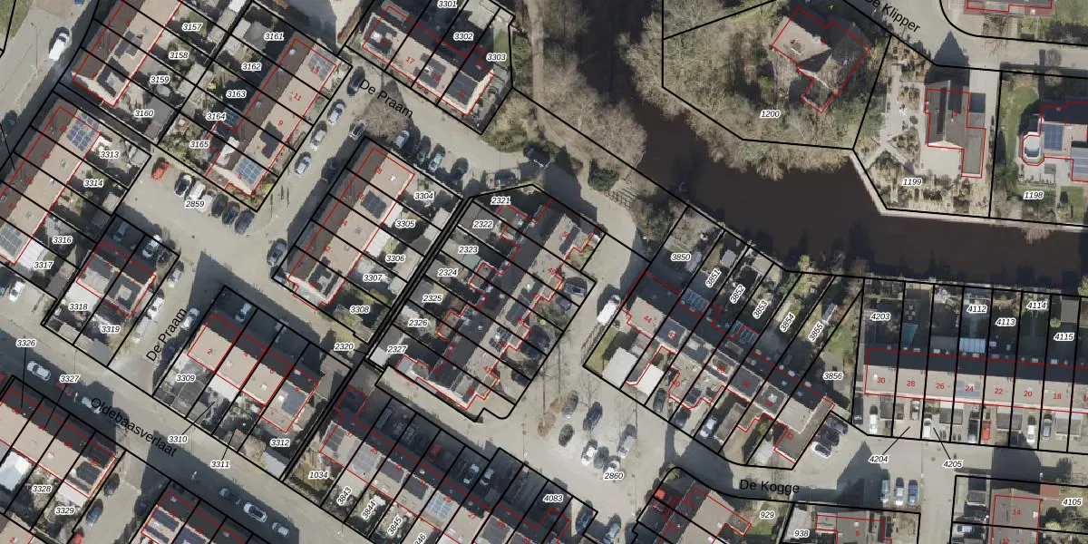 Gebruik de zoekbalk of klik op een perceel voor informatie over de adressen binnen dit perceel.