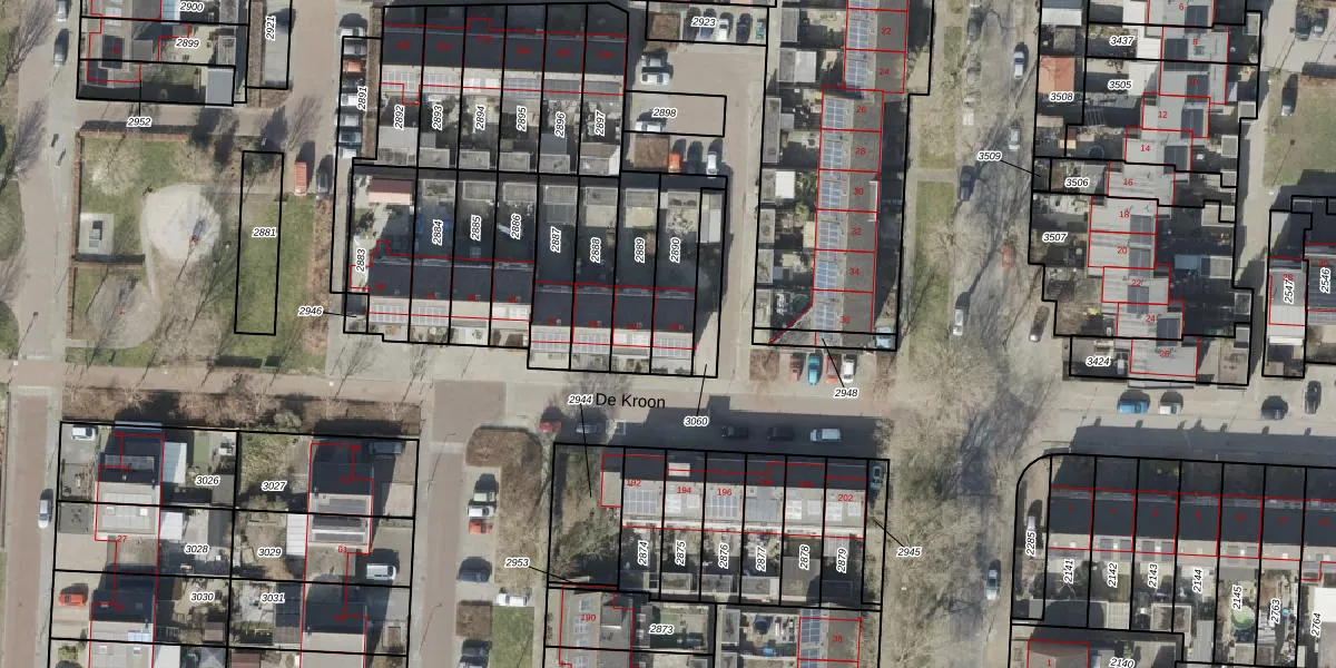 Het perceel waarop De Kroon 103 staat heeft een oppervlakte van 195 m². Dit is een middelgroot perceel. De perceeloppervlakte wordt geregistreerd door het Kadaster. Gedetailleerde informatie over de maten van dit perceel kunt u vinden in het rapport Kadastrale kaart met maatvoering van De Kroon 103.