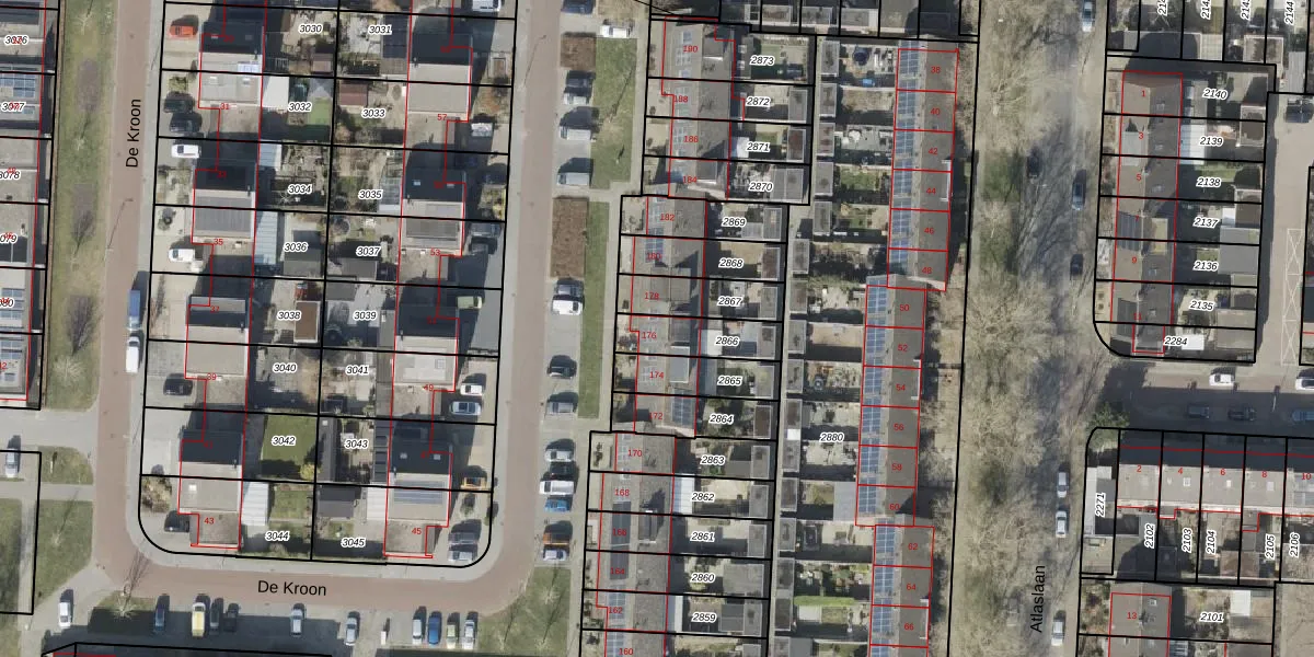 Het perceel waarop De Kroon 176 staat heeft een oppervlakte van 153 m². Dit is een middelgroot perceel. De perceeloppervlakte wordt geregistreerd door het Kadaster. Gedetailleerde informatie over de maten van dit perceel kunt u vinden in het rapport Kadastrale kaart met maatvoering van De Kroon 176.