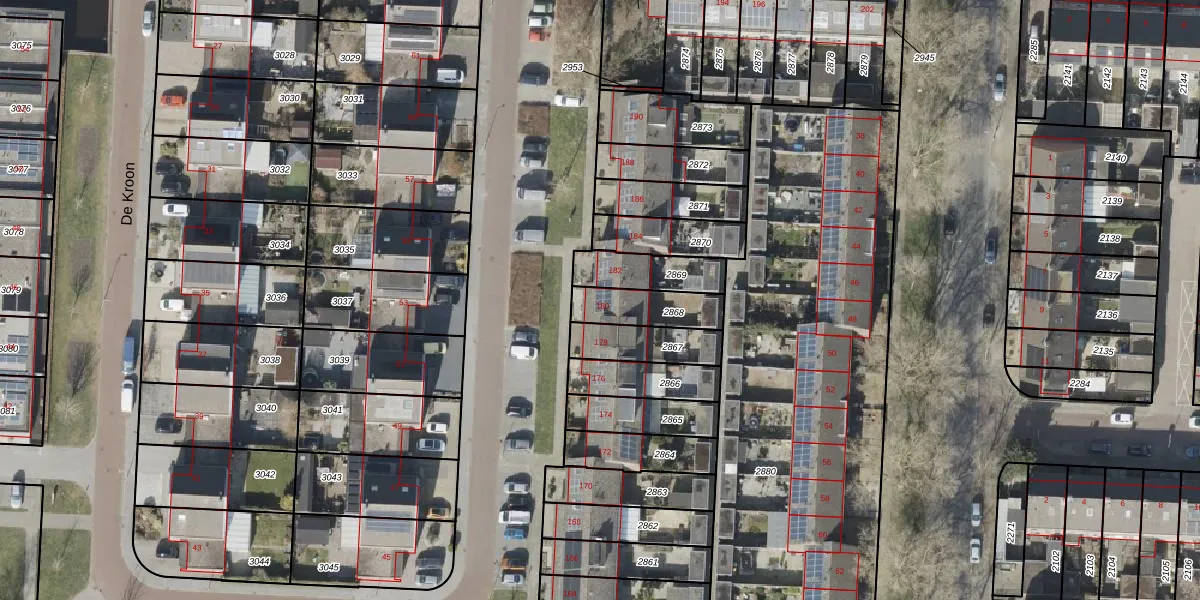 Het perceel waarop De Kroon 180 staat heeft een oppervlakte van 153 m². Dit is een middelgroot perceel. De perceeloppervlakte wordt geregistreerd door het Kadaster. Gedetailleerde informatie over de maten van dit perceel kunt u vinden in het rapport Kadastrale kaart met maatvoering van De Kroon 180.