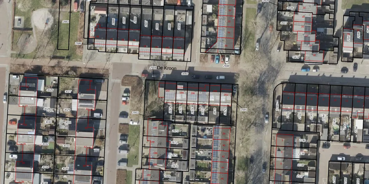 Het perceel waarop De Kroon 194 staat heeft een oppervlakte van 136 m². Dit is een middelgroot perceel. De perceeloppervlakte wordt geregistreerd door het Kadaster. Gedetailleerde informatie over de maten van dit perceel kunt u vinden in het rapport Kadastrale kaart met maatvoering van De Kroon 194.